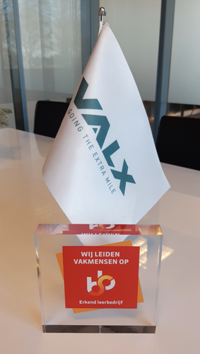 Im Jahr 2022 wurde VALX von der SBB (Samenwerkingsorganisatie Beroepsonderwijs Bedrijfsleven) als akkreditierter Praktikumsbetrieb ausgezeichnet, und Sie haben die Möglichkeit, ein Praktikum zu absolvieren und die Vorteile des Lernens aus der Praxis zu genießen.