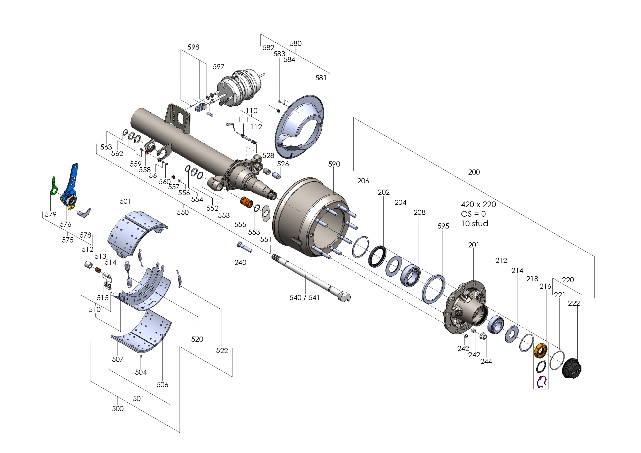 | 575 | 50 575 002 | Remsteller set per as | Haldex S-ABA pos 562-566,576-579 | |